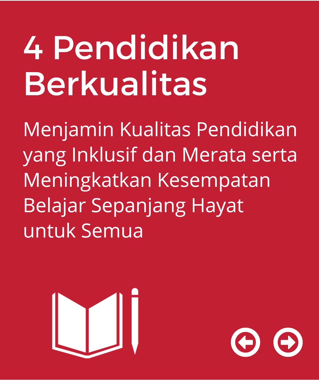 Pendidikan berkualitas untuk semua SDG-4 merupakan salah satu dari 17 tujuan pembangunan berkelanjutan SDGs. Penanganan soal pendidikan berada di tujuan SDGs nomor empat. Indonesia adalah salah satu negara berkembang yang masih mempunyai masalah dalam dunia pendidikan.