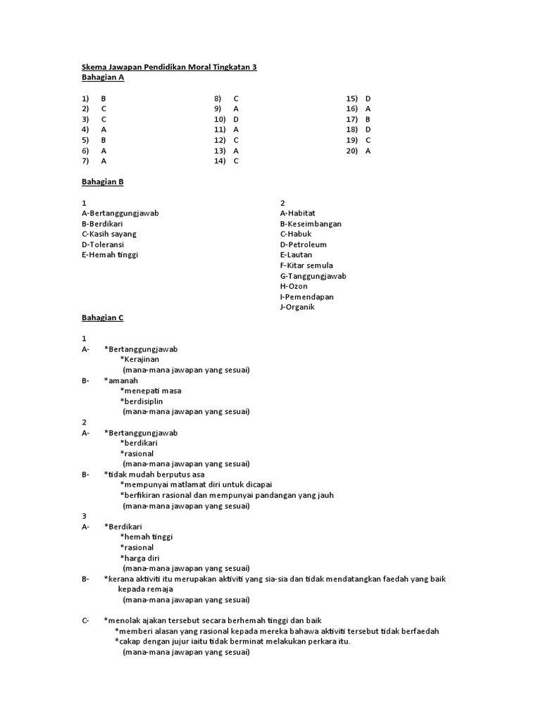 Skema Jawapan Pendidikan Moral Tingkatan 3