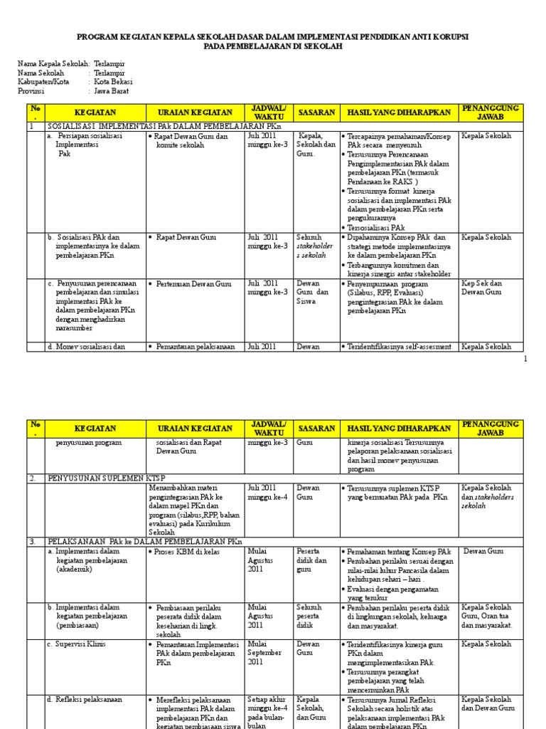 Program Kegiatan Kepala Sekolah Dasar Dalam Implementasi Pendidikan Anti Korupsi Pdf