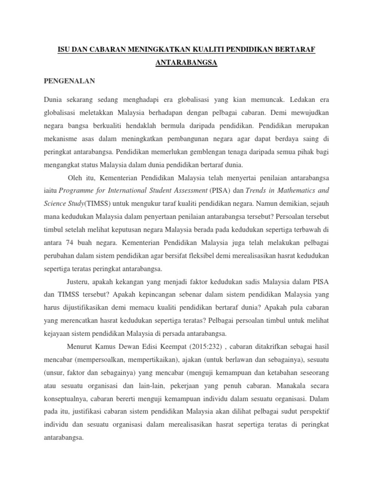 Isu Dan Cabaran Meningkatkan Kualiti Pendidikan Bertaraf Antarabangsa Pdf