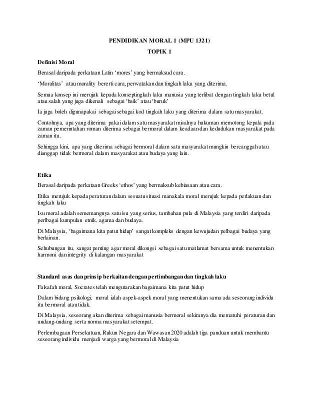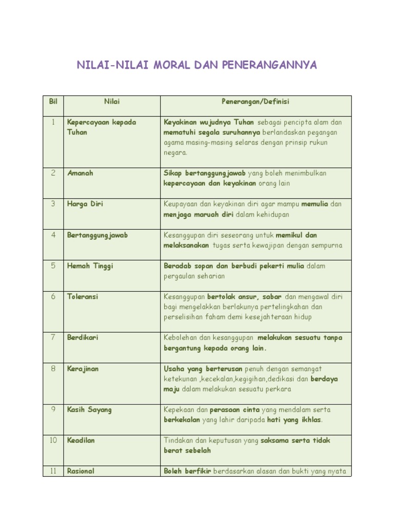 Pendidikan moral bermaksud. Nilai-nilai moral yang diamalkan oleh seorang pelajar untuk mencapai keputusan yang cemerlang dalam peperiksaan. Berdasarkan Kamus Pelajar Edisi Kedua pendidikan bermaksud perihal atau perbuatan mendidik. Melihat seringnya terjadi konflik dan sentimen antar kelompok sesama manusia dan lain sebagainya oleh karena itu perlu kiranya untuk melihat kembali ajaran agama yang diturunkan sebagai pedoman hidup manusia.